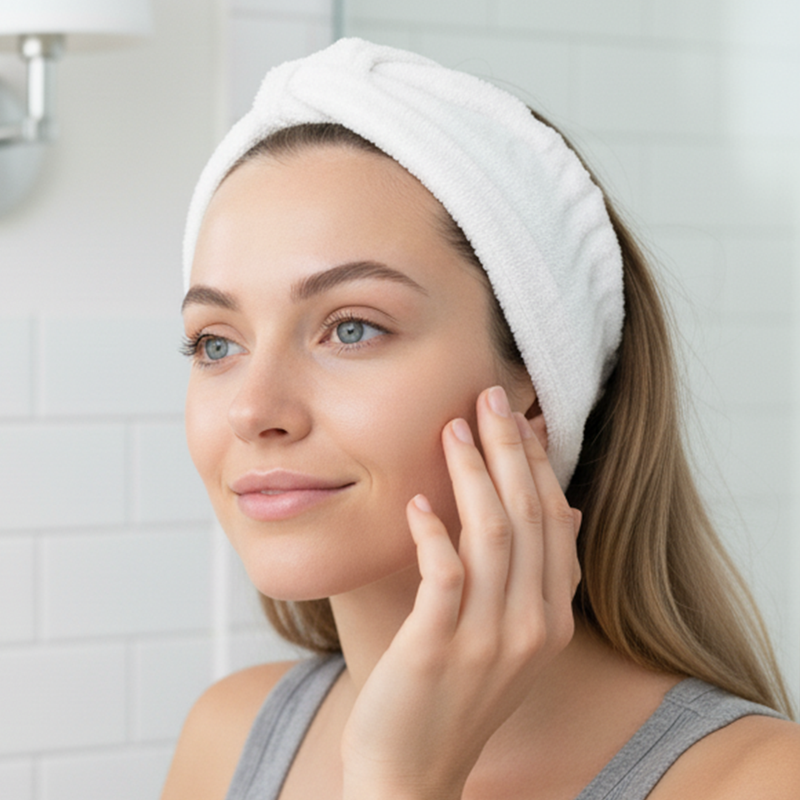 Mantieni il viso fermo e rilassato per 2-5 minuti. Sentirai una leggera tensione e le linee sottili e il gonfiore si attenueranno.